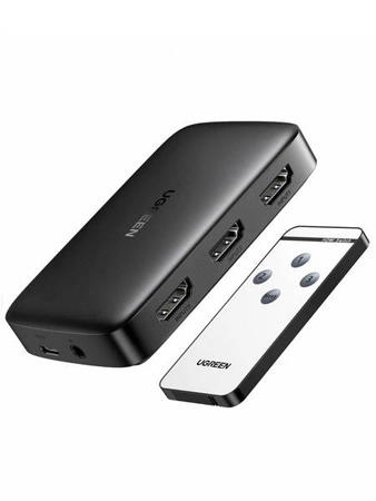 - Produkt od Ugreen to rozdzielacz, który możesz obsługiwać bezprzewodowo za pomocą pilota dołączonego do zestawu. Dzięki kilku portom do CM332 podłączysz więcej urządzeń. Przełącznik obsługuje rozdzielczość 4K i nie wymaga dod
